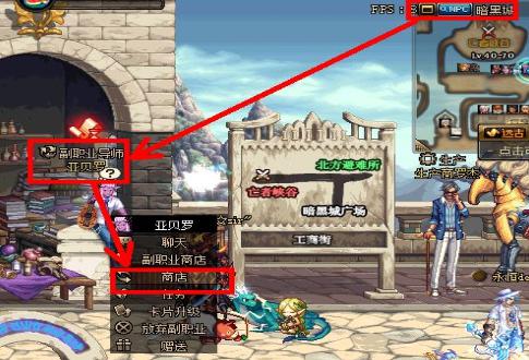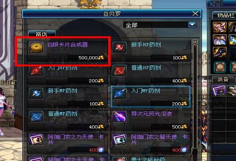 2、有了卡片,去买白银卡片合成器,到暗黑城找到(副职业导师亚贝罗)点击他的商店;