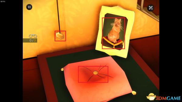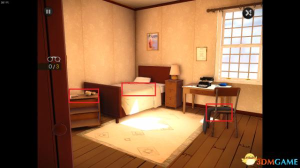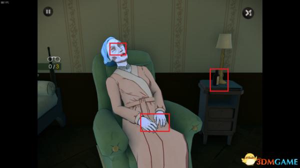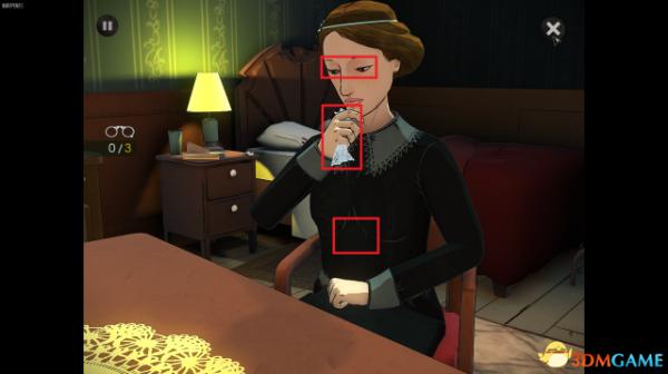 用钥匙打开卧室的门(5侦探点),先检查床:相框、带血的手帕和枕头上的血迹(2侦探点),查看左边的柜子开始解谜,转动圆盘让花能进入中间。