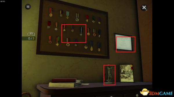 先把表盘调到12点钟(3侦探点,获得成就:四叶草),拧开右边上下角的装饰,打开右边木板获得钥匙同时记住木板上的密码:左上3左下2右上1右下2,打开顶上面板按照密码调整四个角,再用刚刚获得的钥匙拧左上和右下的齿轮然后拧中间齿轮,再用钥匙拧开表盘上的孔打开左边木板,查看里面信件。(10侦探点)