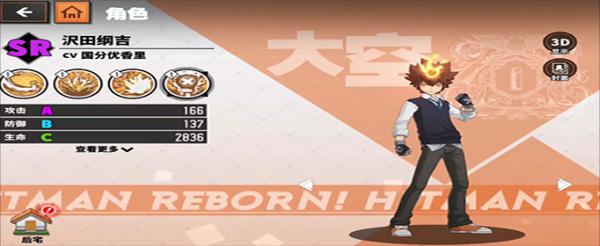 1、沢田纲吉是一个机动性十分强大的角色,无论技能还是伤害都很不错;