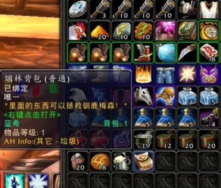2、接完任务后,会获得烟林背包,然后这里面有任务物品,必须要先打开他,才能做任务。你将会获得一包驯鹿之尘;