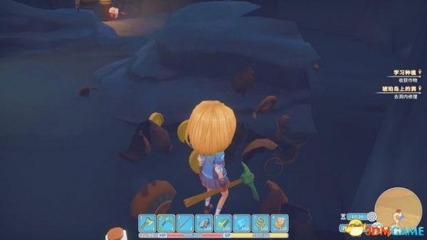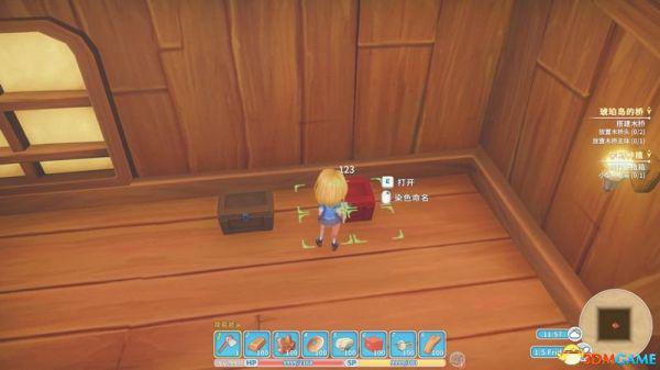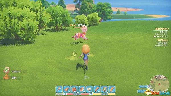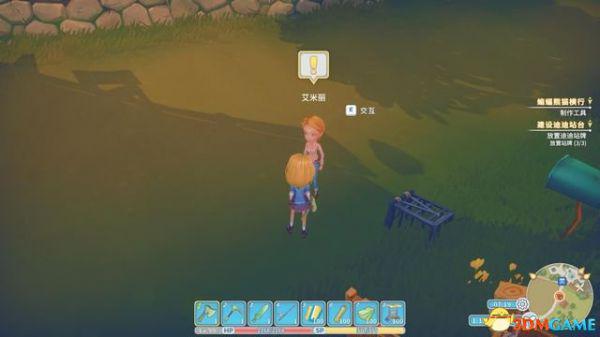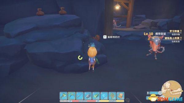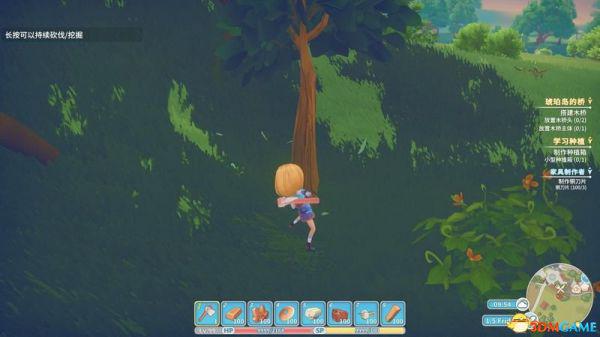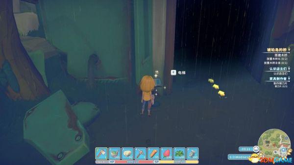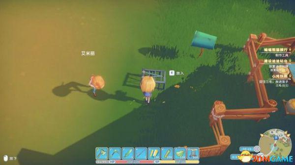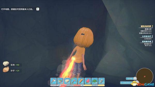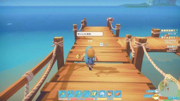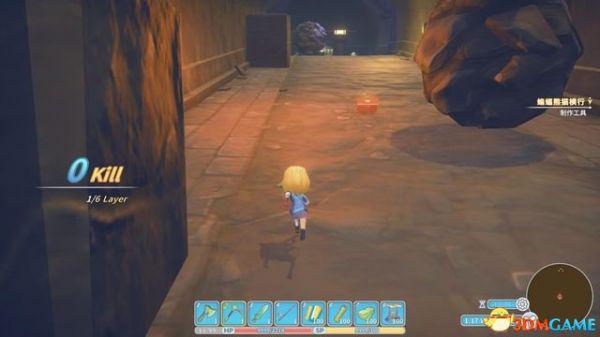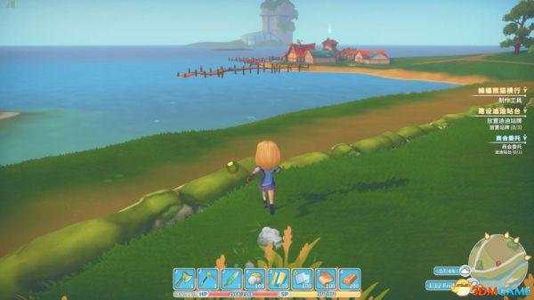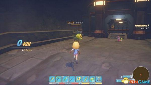 快捷栏下方的蓝框中是人物的级别、生命和体力(消耗完就只能睡觉休息了)。