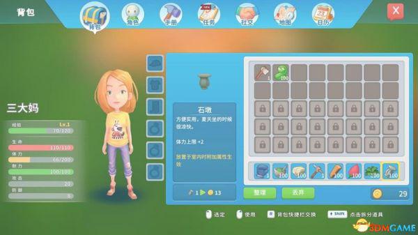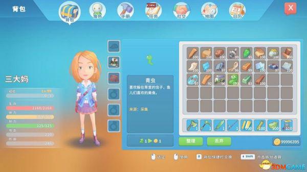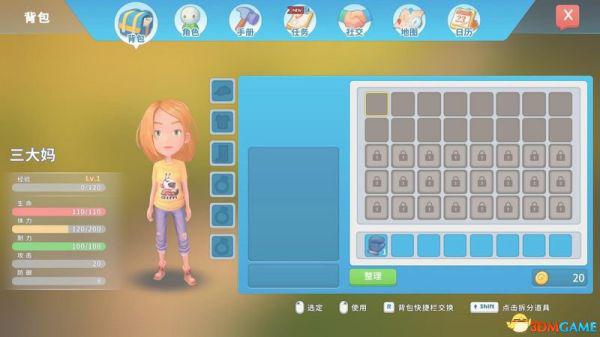 背包初始栏位并不多,以后可以制作大背包,解锁更多存储位置。