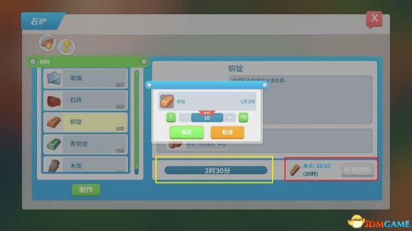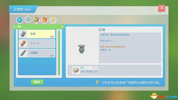 例如石炉需要10个木头加一个石墩来制作,而石墩又需要10个石块。