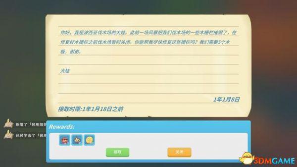 拯救伐木场的任务需要的材料众多,要慢慢筹集。