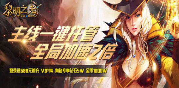 3D动作冒险手游《黎明之光(星耀版)》以上古龙神之间的封魔战争为故事背景,采用了顶尖自研Saturn3D引擎, 8大次时代画面渲染技术,打造最真实炫丽的3D大世界。星耀版更是创新的加入了主线“一键托管”、全局跑图+战斗2倍速改动、升级再度加速,给你超爽升级体验。创角除了赠送VIP14、角色专享钻石*5W、金币*1000W外,还有价值688元首充相送, 史诗坐骑、传说武器、珍稀道具白送,助你无压力畅爽开局。