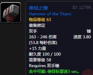 1、泰坦之锤是一件非常不错的武器,攻击敌人时有一定的几率使对方陷入昏迷的状态中,持续时间3秒钟,不过泰坦之锤制作需要图纸;