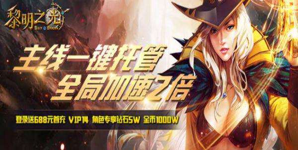 3D动作冒险手游《黎明之光(星耀版)》以上古龙神之间的封魔战争为故事背景,采用了顶尖自研Saturn3D引擎, 8大次时代画面渲染技术,打造最真实炫丽的3D大世界。星耀版更是创新的加入了主线“一键托管”、全局跑图+战斗2倍速改动、升级再度加速,给你超爽升级体验。创角除了赠送VIP14、角色专享钻石*5W、金币*1000W外,还有价值688元首充相送, 史诗坐骑、传说武器、珍稀道具白送,助你无压力畅爽开局。