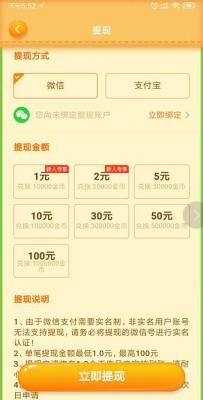 3、1元/2元的提现是新人专享,每个账号只能享受一次,后续无法提现;
