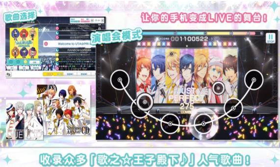 歌之王子殿下闪耀之星是一款根据同名漫画改编的音乐节奏游戏,玩家可以收集各种歌星,超豪华人气声优阵容,青春的舞蹈动作令人耳目一新。还支持竖屏模式!快来与偶像交流吧!