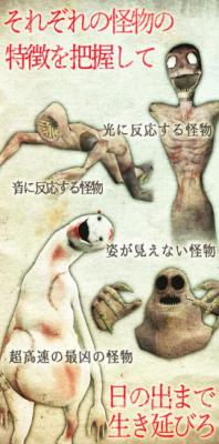 游戏中你需要在展开调查的同时注意随时可能袭来的怪物,它们能力各有不同有的是对声音有反应有的对光有反应有的还能隐身,总之想尽一切办法活下去,只要坚持到日出(游戏限定时间结束为止)就是胜利。